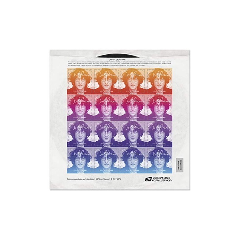 Este sello, en honor al legendario cantante y compositor John Lennon, es el último en una serie de sellos de Music Icons. Amado en todo el mundo, Lennon tuvo éxito tanto como miembro fundador de los Beatles como artista solista. La música de Lennon continúa hablando por la paz y la verdad.
