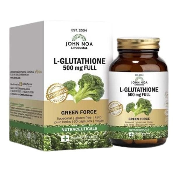 The John Noa L-Glutathione 500 mg Full Liposomal Food Supplement contains glutathione (500 mg) of high absorption and bioavailability.
