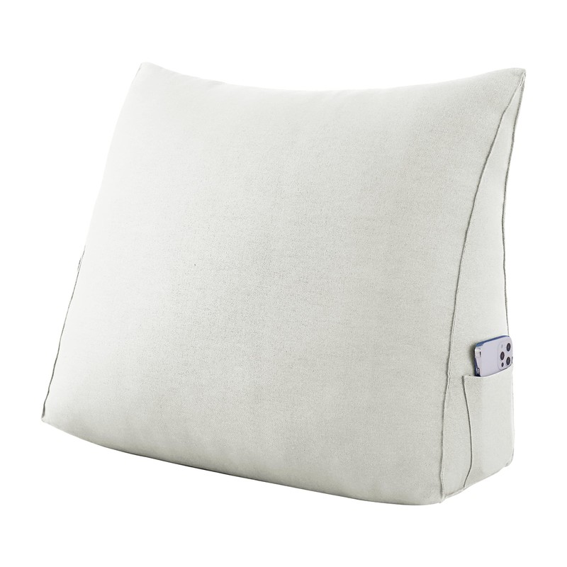 Johnear Triangular Headboard Pillow Daybed Wedge Pillow Cotton Linen Large Bolster Reading Back Rest Pillow for Sofa Bed Support Bolster Upholstered Backrest Positioning Lumbar Cushion (Ivory, Small)