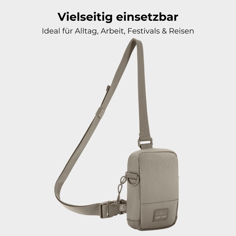 Johnny Urban Arthur Chest Bag for Men and Women - Sling Bag with Adjustable Strap for Leisure, Festival, Holiday - Shoulder Bag with Space for Mobile Phone, Keys, Purse, Desert Grey