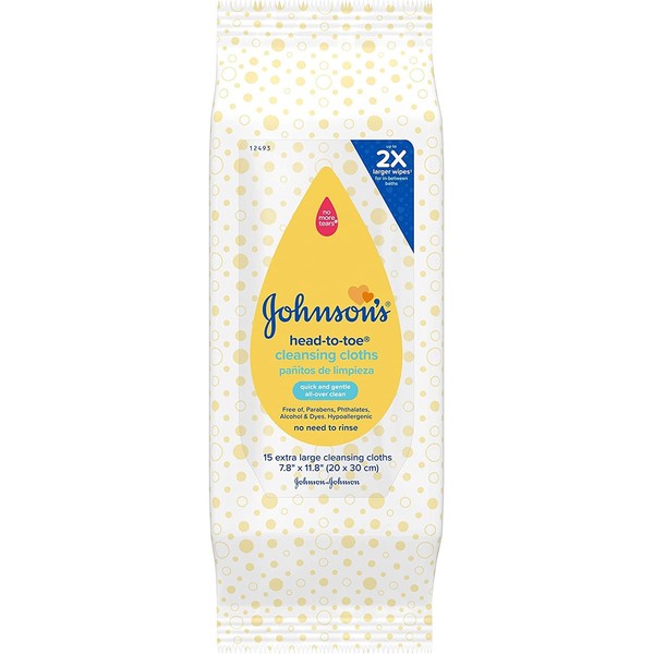 Johnson & Johnson 117008 Head-To-Toe Cleansing Clothe, 15 Count(Pack of 6)