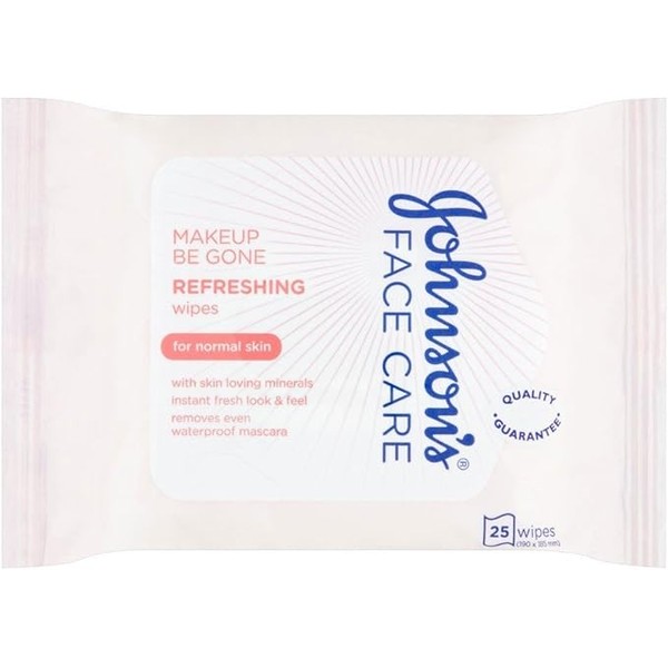 Johnson’s Face Care Make-Up Be Gone Refreshing Wipes – Pack of 25 Soft Facial Cleansing Wipes for Quick & Gentle Makeup Removal, Removes Waterproof Mascara, Refreshes & Hydrates Skin, Suitable for All Skin Types