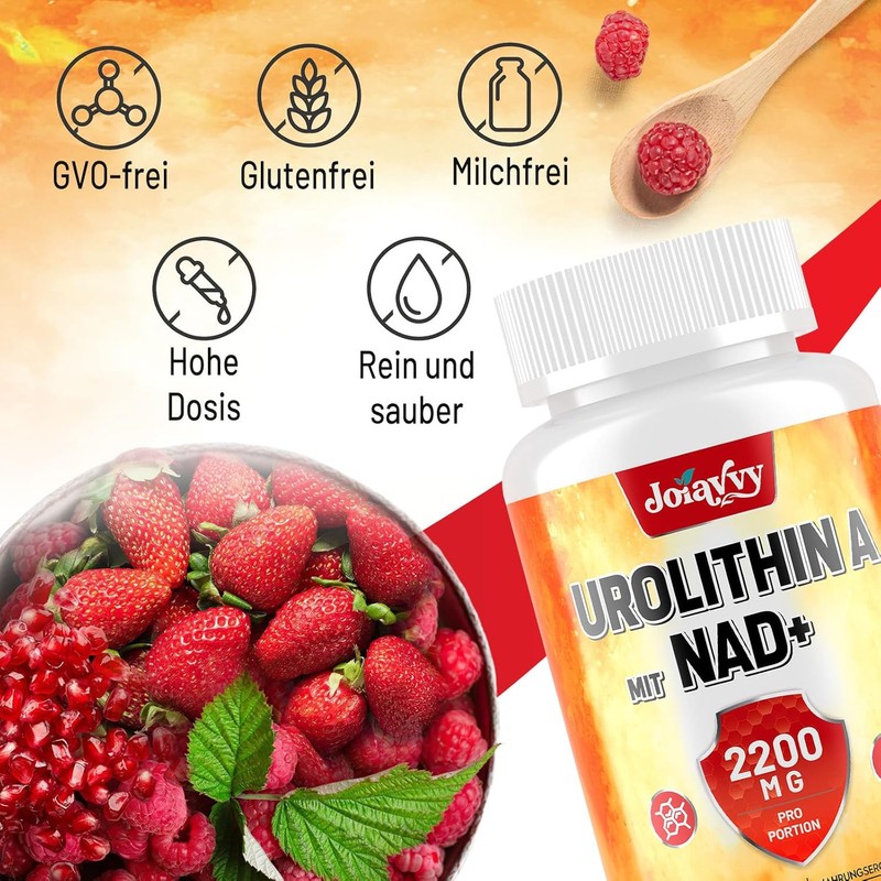 - Effortless and practical: Joiavvy soft gels are easy to swallow and are odourless. Urolithin A and NAD+ are combined in an advanced formula. This combination contains two active ingredients in a soft gel capsule.