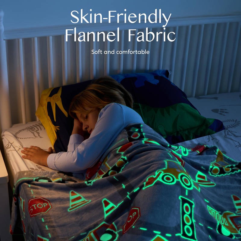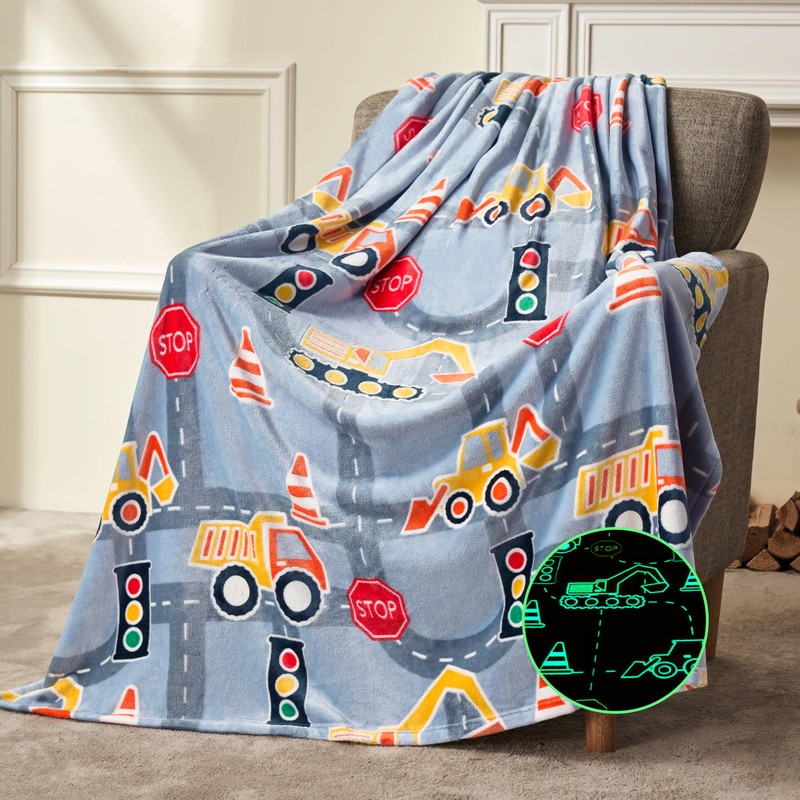 Joiedomi Glow in The Dark Blanket - Construction Gifts for Girls Boys Age 2 3 4 5 6 7 8 9 10 11 12 Year Old - Soft Cozy Flannel Kids Throw Blanket - Birthday Bedroom Decor 50"×60"