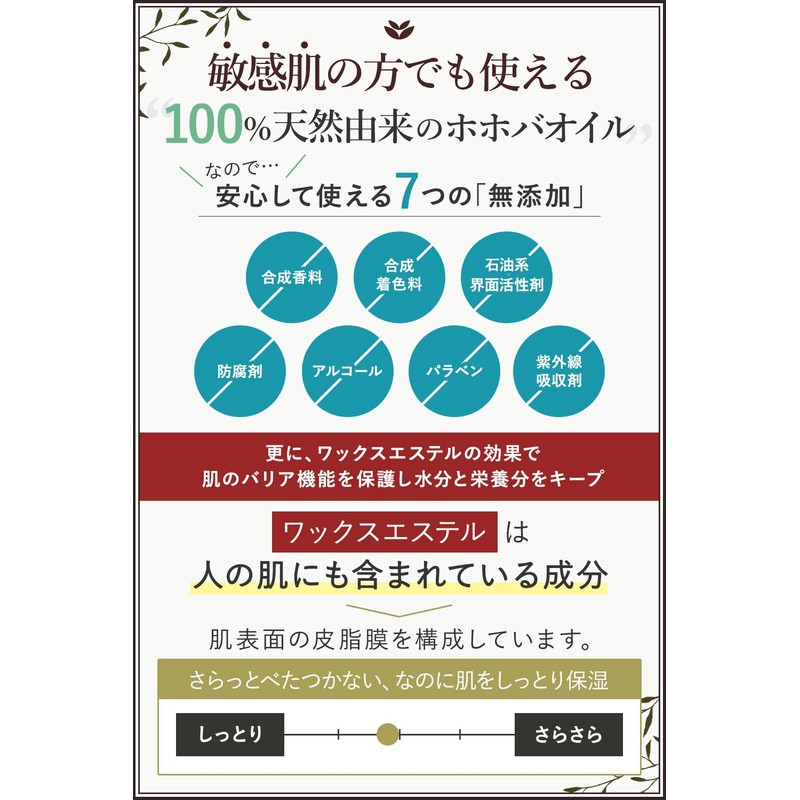 - (100% Pure Jojoba Oil) 100% natural derived ingredients, and a nutritious squeeze oil with high freshness. With jojoba oil, it is highly moisturized for confident skin