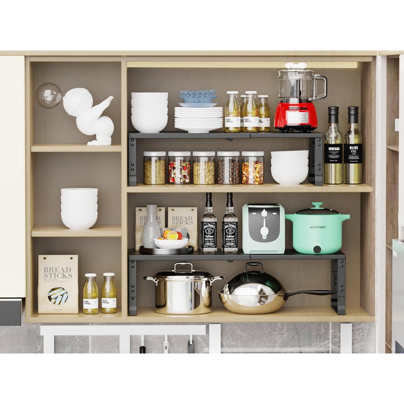 Jojocross Adjustable Expanable Stackable Spice Rack Shelf Pantry Storage Organizer for Kitchen Cabinet,Countertop,Bathroom and More.Space is no Longer Limited(2Packs/Black/Medium)