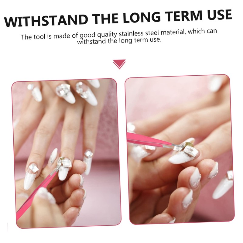 jojofuny 3pcs Multifunctional Dual-headed Nail Art Tweezers Comfortable and Tools for Easy Nail Decoration and Gem Placement Pink