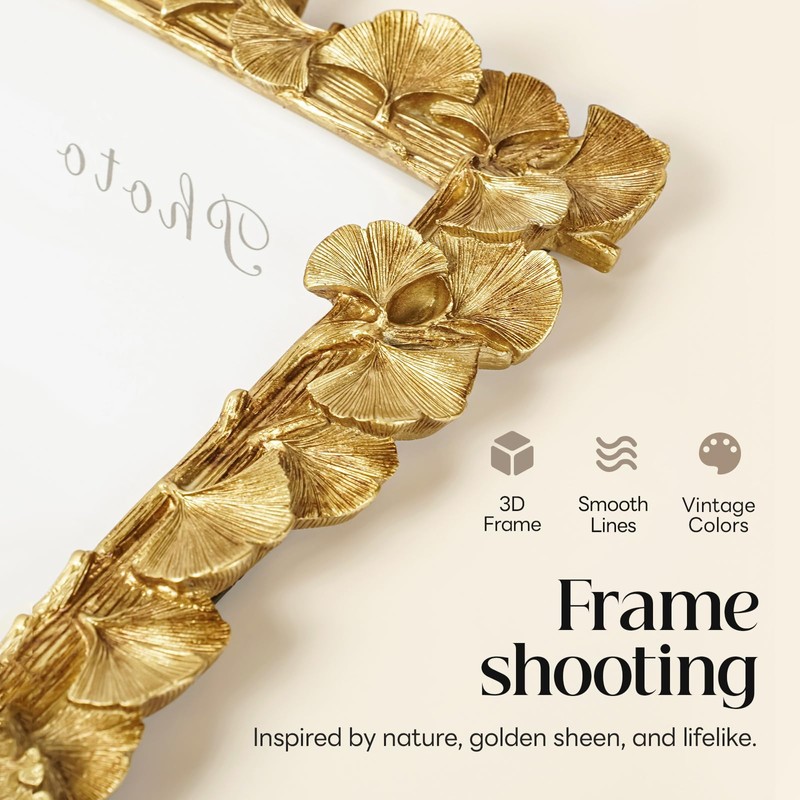 - VINTAGE DESIGN: The gold vintage frame and high-definition glass mirror design look very textured and suitable for your various home styles, whether it is country style or modern style. Make your home decoration more beautiful with the photo frame