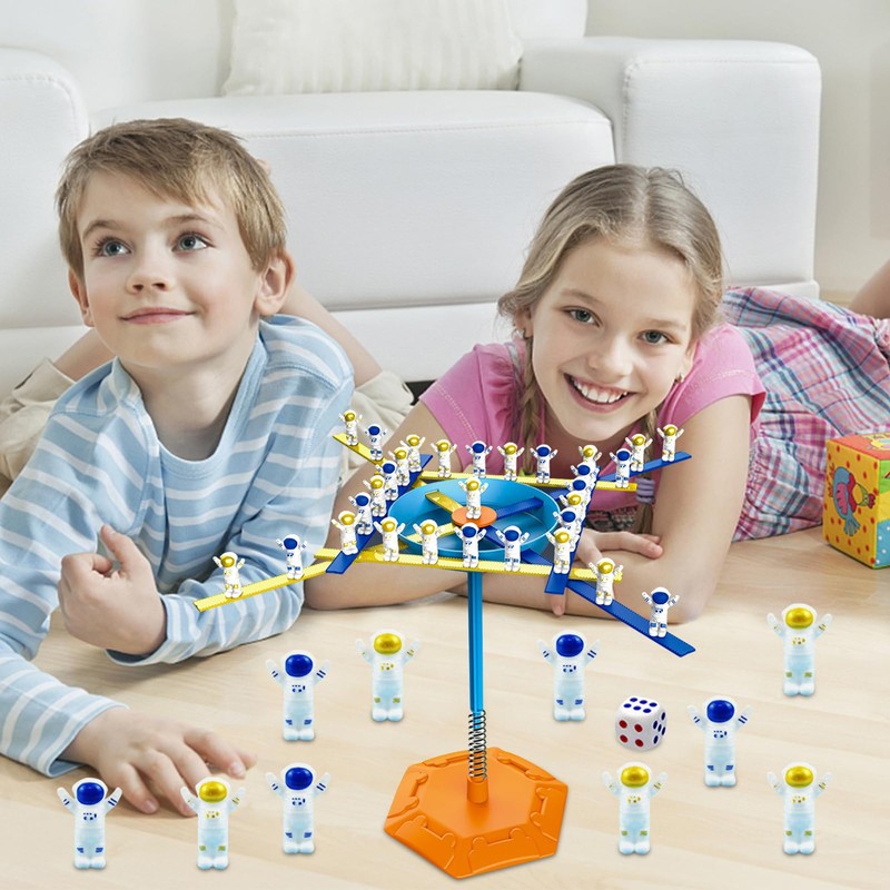 - Astronaut balance counting toy: This set of learning toys for children includes: 1 x balance base (base colour random), 40 x astronauts, 1 x top cover, 1 x column, 1 x spring, 1 x play stick, 1 x dice, 1 x punishment disc, 1 x storage bag. (see product description for the game)