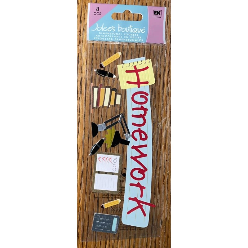 Jolee's Boutique RARE Jolees Homework Title Books Pencils Calculator Lamp Pen Scrapbook Sticker