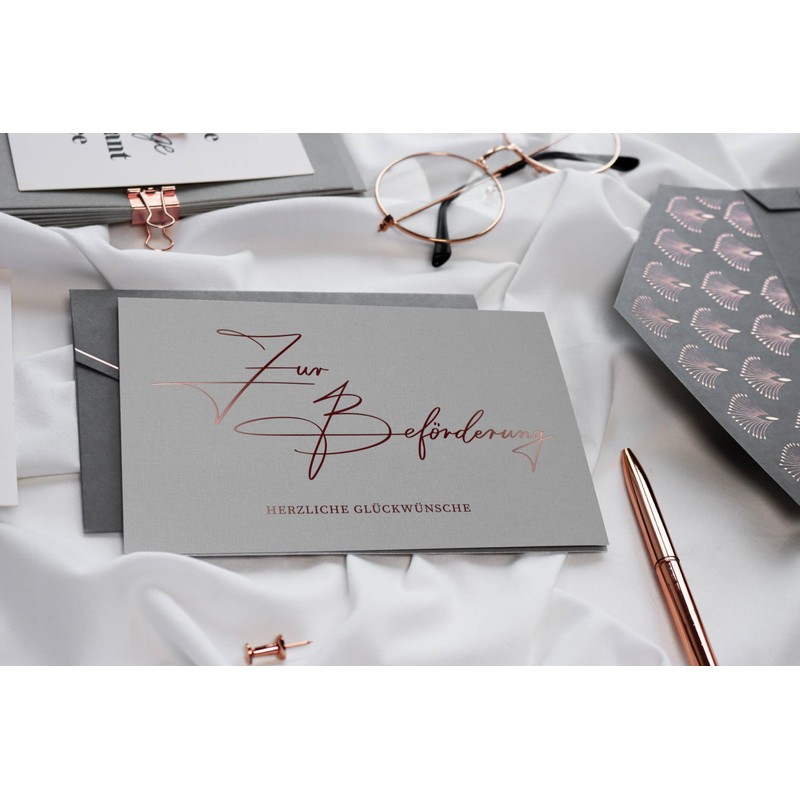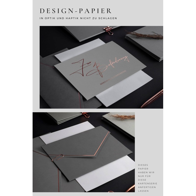 - For the love of uniqueness, our font is handwritten and rose gold hot foil embossed, printed on 350 g design paper and there is a premium envelope with real wax seal.