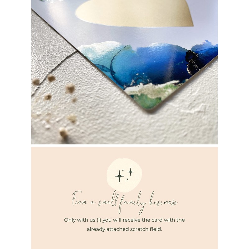 - Only with us will you receive the card with the scratch field already attached, so you can look forward to the moment of delivery.