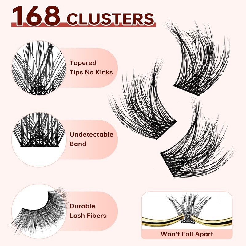 - High-Quality Faux Mink Individual Lashes: Crafted with high-quality faux mink fibers, these individual cluster lashes are soft, lightweight, and reusable, offering a natural wispy look that blends seamlessly with your real lashes. The waterproof bond & seal keeps them secure for up to 72 hours, and the lightweight design ensures all-day comfort. These lashes are ideal for creating both natural volume and dramatic looks.