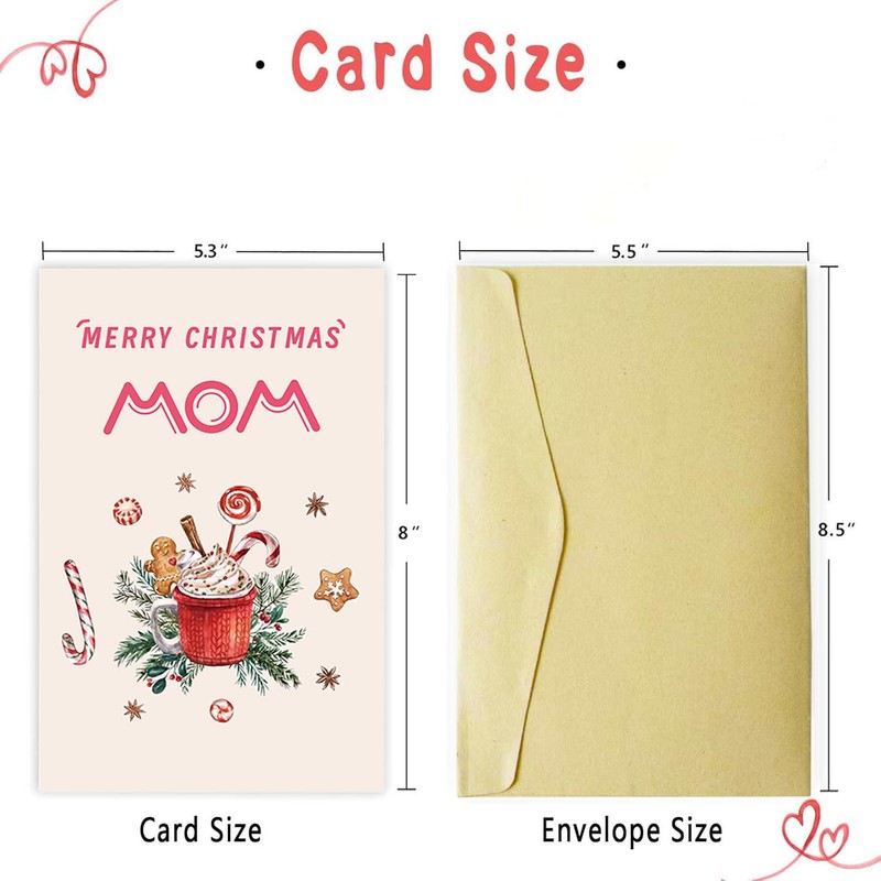 JolinKoin Christmas Card for Mom, Mom Christmas Card, Christmas Card Mom, Merry Christmas Card Mom, Christmas Card for Mother with Envelope