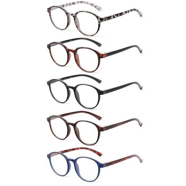 JOLISU 5 Pack Reading Glasses For Women and Men,Blue Light Blocking Computer Reader Spring Hinge Eyeglasses (1.25)