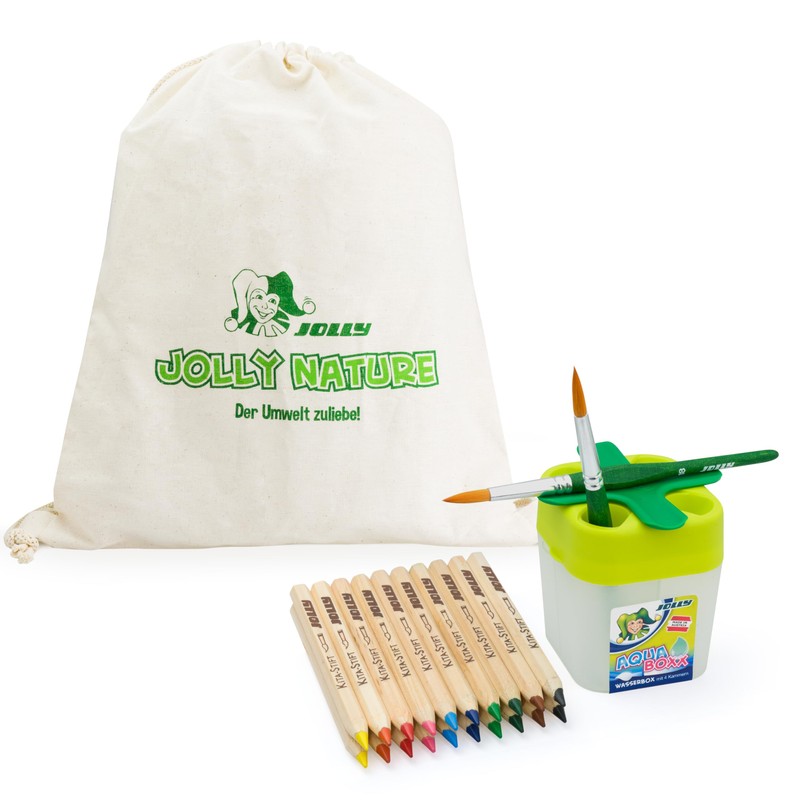 JOLLY Kita/Kiga Starter Pack | 20 Extra Thick, Water-soluble Natural Colouring Pencils | Includes 2 Brushes, Aqua-Boxx and Storage Bag, 1 Piece (Pack of 1)