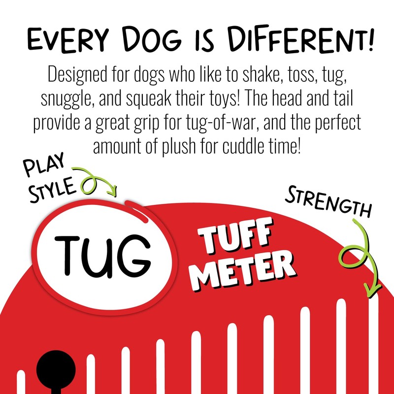 - Stuffing in the head and tail provide a great grip for tug-of-war, and the perfect amount of plush for cuddle time