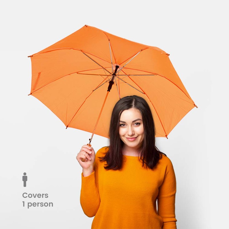 - ✔︎ SIZE: These umbrellas weigh less than 0,3kg and are slightly smaller than your average umbrella with a canopy span of just 90cm. They still comfortably fit 1 adult and this makes them ideal for packed events!