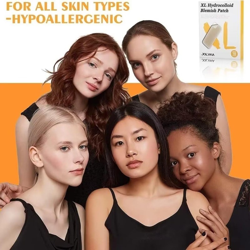JOLVKA Large Blemish Patch,18 Strips (XL), Hydrocolloid Blemishes Patch Spot Dots, Zit Stickers