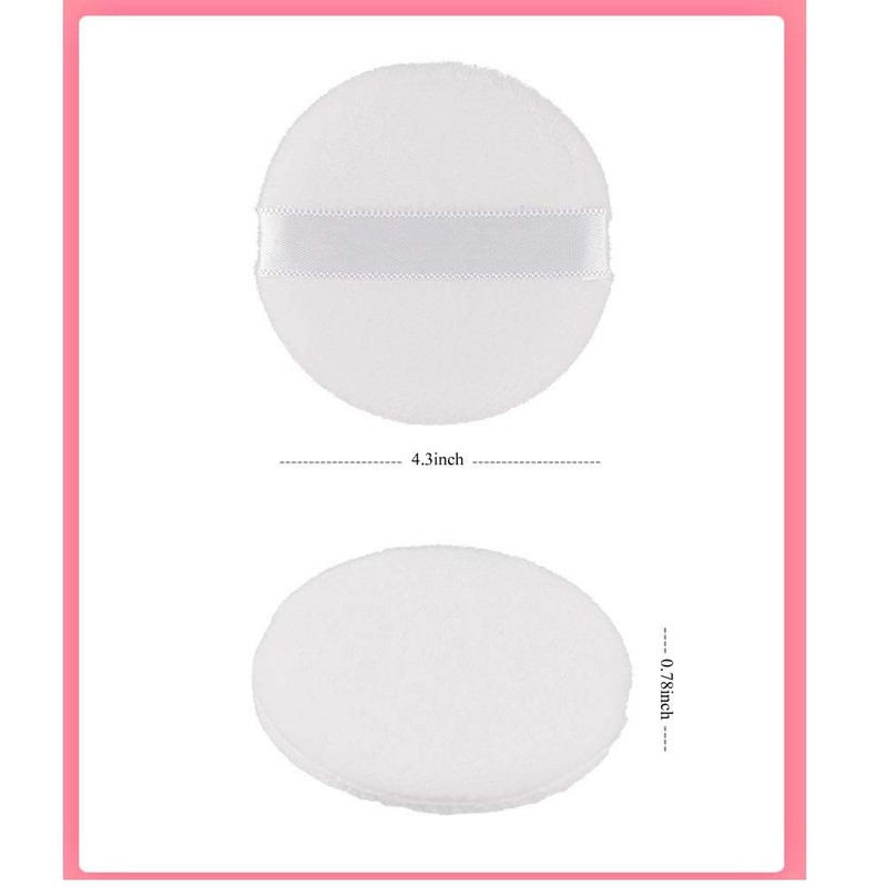 - Los grandes puffs en polvo son perfectos para cubrir una gran área. Diámetro: 10,5 cm x 2 cm de grosor.