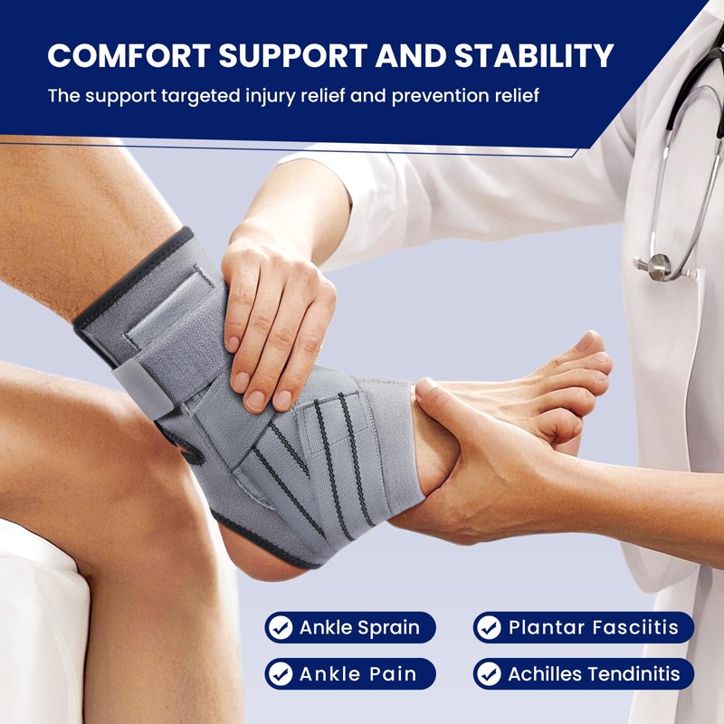JOMVD Ankle Brace for Women Men, Adjustable Ankle Support with Side Stabilizers for Ankle Sprained, Achilles, Plantar Fasciitis Injury Recovery
