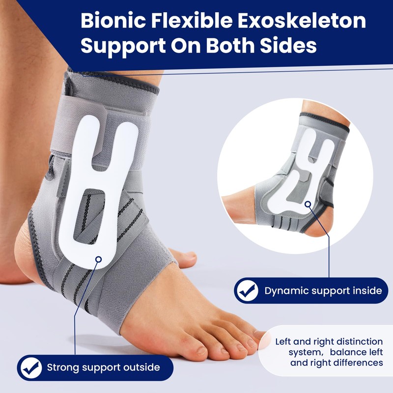 - LEFT-RIGHT BALANCE SYSTEM: Bionic soft armor support on both sides of the ankle guard, Addresses asymmetrical ankle weaknesses by offering tailored support to each side, correcting imbalances caused by injury or chronic instability.The rigid external structure prevents excessive inward/outward rolling of the ankle, protecting against sprains and misalignment.Combines lightweight flexibility with exoskeleton-like rigidity, ensuring unrestricted motion while safeguarding vulnerable areas.