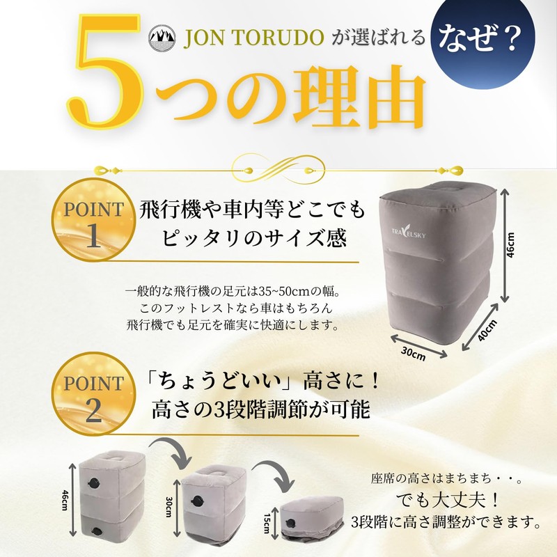 JON TORUDO フットレスト エアークッション 足枕 空気入れ簡単 ポンプ不要 エアオットマン 飛行機 車 快適グッズ 便利グッズ足置き コンパクト 空気入れ付き デスク下 車中泊 空気入れ不要
