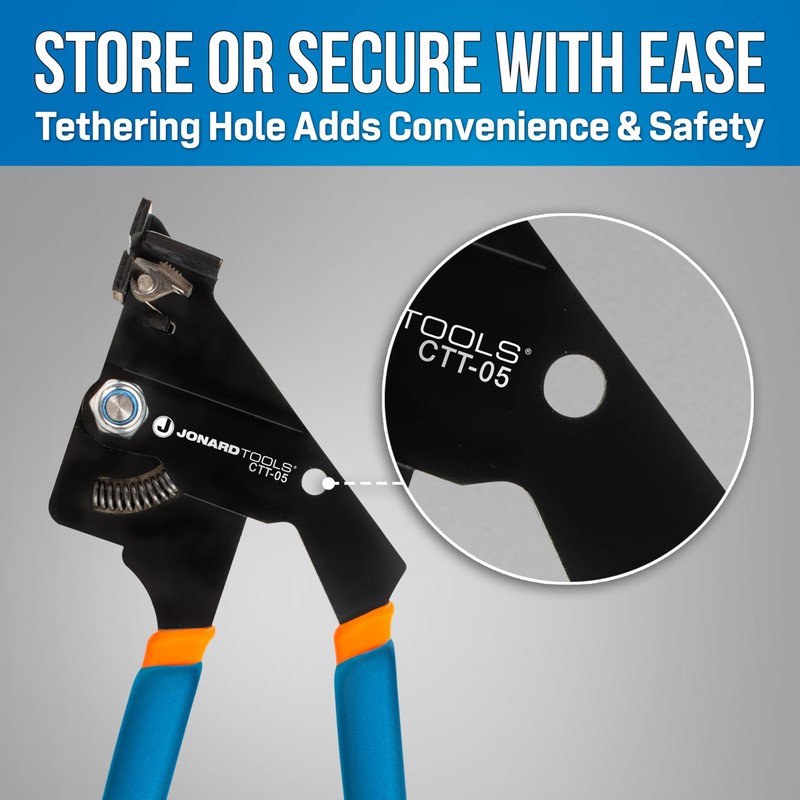 Jonard Tools CTT-05 Deltec® Cable Tie Strap Tensioning & Cutting Tool - 0.183"–0.500" Strap Width Capacity, Heavy-Duty, Spring-Loaded Head, Comfortable Grip