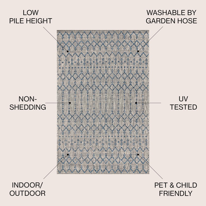 - INDOOR/OUTDOOR DURABILITY: Give your patio, deck or porch an instant makeover with an indoor/outdoor rug; Low-pile synthetic rug fibers are durable for high-traffic spaces like the kitchen, mud room or entry; Perfect for families with kids