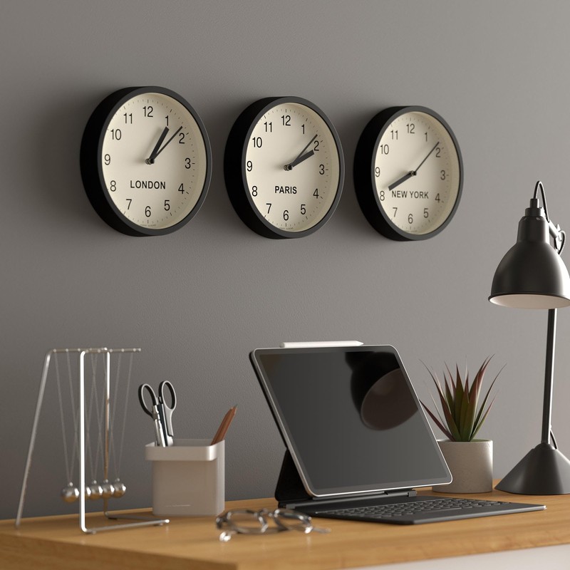 Jones Clocks® Paris Time Zone wall clock | Small modern round clock | 20cm | Black | Easy to read numbers | Ideal for kitchen, living room, office or any small space