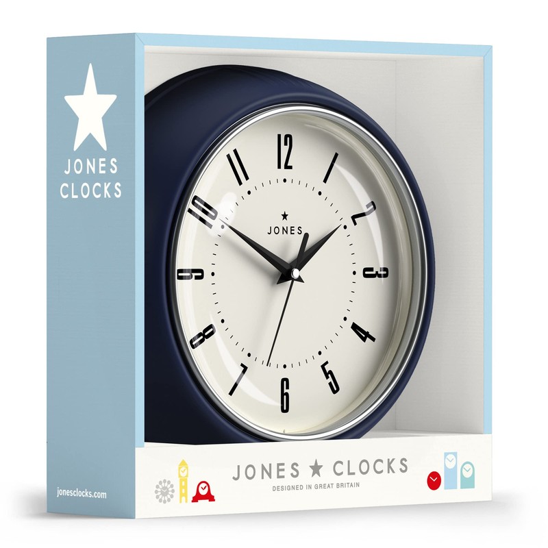 - Back nail slot allows for easy installation. Requires 1 x AA Alkaline Battery (Not Supplied). We advise that you use a new high quality brand name battery. Jones Clocks are proudly designed in the UK.