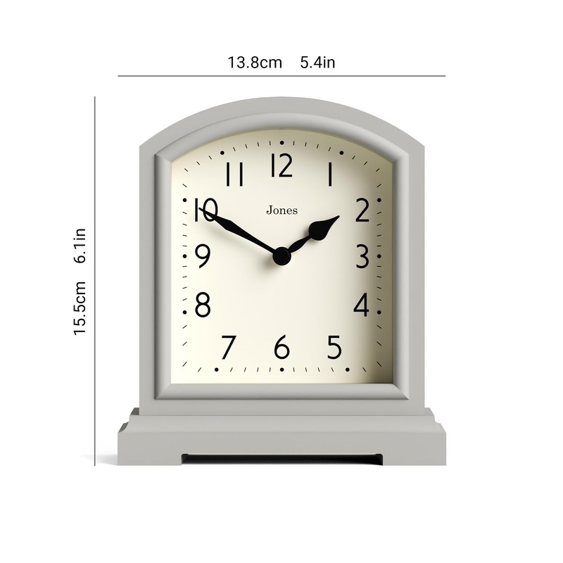 Jones Clocks® Tavern Mantel Clock - Traditional/Classic Design - Bedroom Clock - Living Room Clock - Office Clock - Mantel Clock - Desk Clock - Shelf Clock - Small Clock (Light Grey)