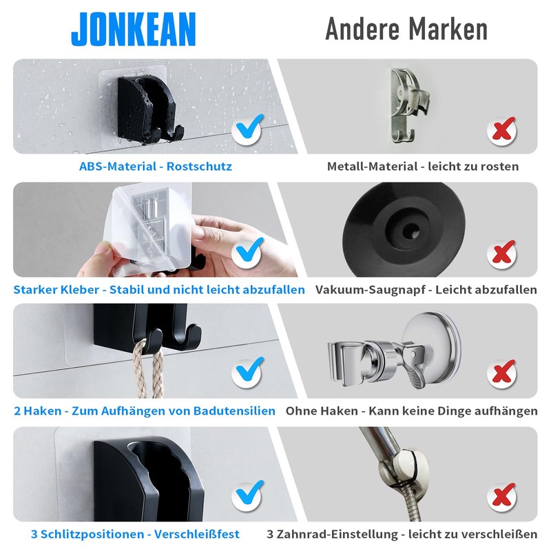 JONKEAN JONKEAN Duschbrause Halterung, Handbrause Halterung Ohne Bohren, Haftender Duschhalterung, Duschkopfhalterung, Brausehalterung (Schwarz,1 St??ck)
