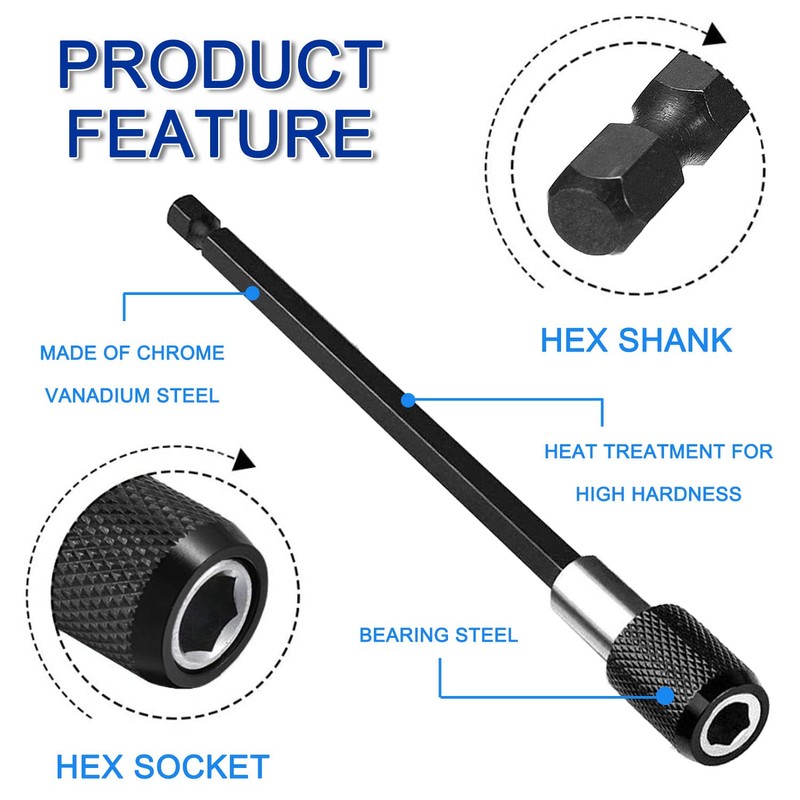 - EASY OPERATION - The 1/4 inch hex shank impact driver extension bar fits most power drills, hand-held drivers and so on