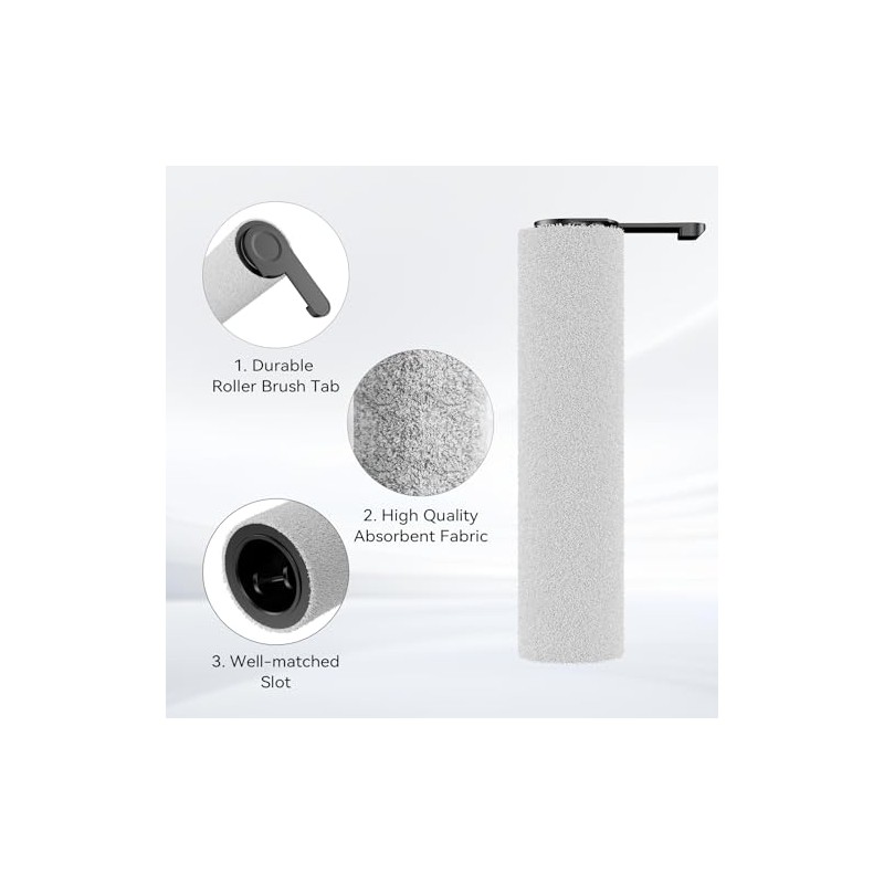 - Cepillo de rodillo: Las fibras ultrafinas del cepillo de rodillo permiten el vacío y el trapeado simultáneos. Elimina eficazmente los derrames de polvo y es adecuado para suelos duros.