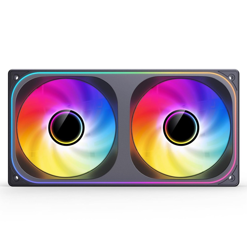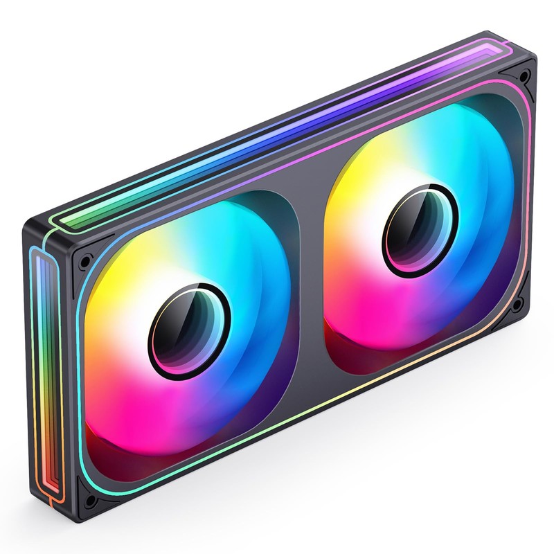 JONSBO ZB-240BR (Reverse) PC Case Fan, Reverse Blade Silent Computer Fan with Axis & 4-Sides Infinity Mirror, All-in-One, Single Frame Unit with 2x120mm ARGB Fans, PWM 2400RPM, 28MM Thick,Black