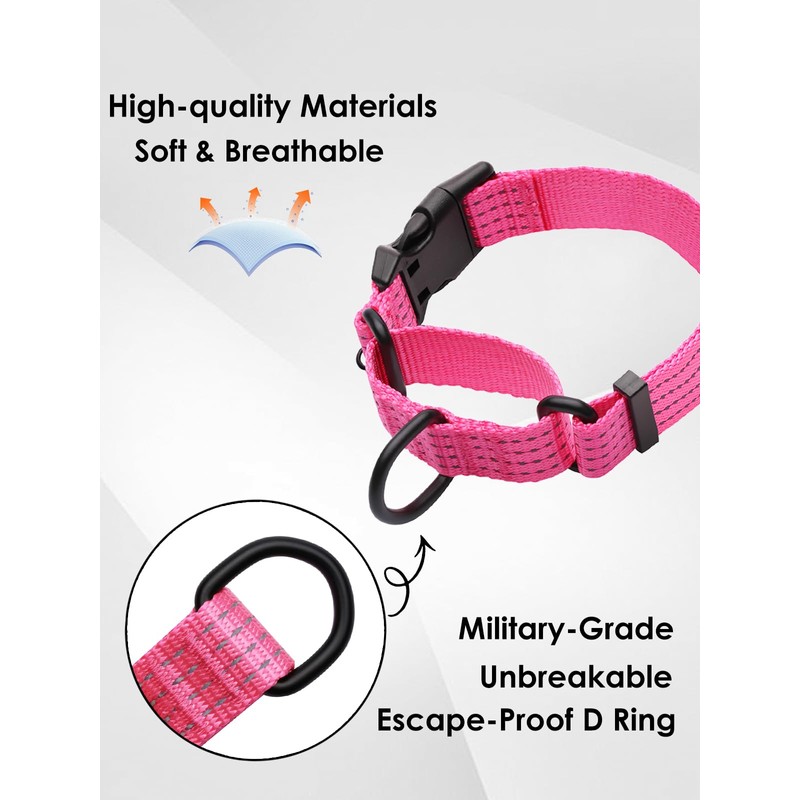 JOOCPUP Martingale Dog Collar | No-Slip Escape Proof Reflective Nylon Training Collar for Small, Medium & Large Dogs | Adjustable Collar with Quick Release Buckle (Pink, L)