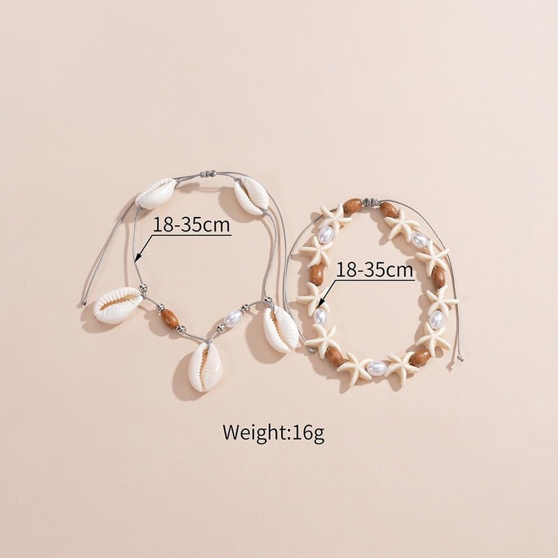 - Perfect size of women's beach Sliding knot design adapts to ankle sizes 7–14 inches. Features a chic blend of pearl-white and warm brown beads for versatile styling.