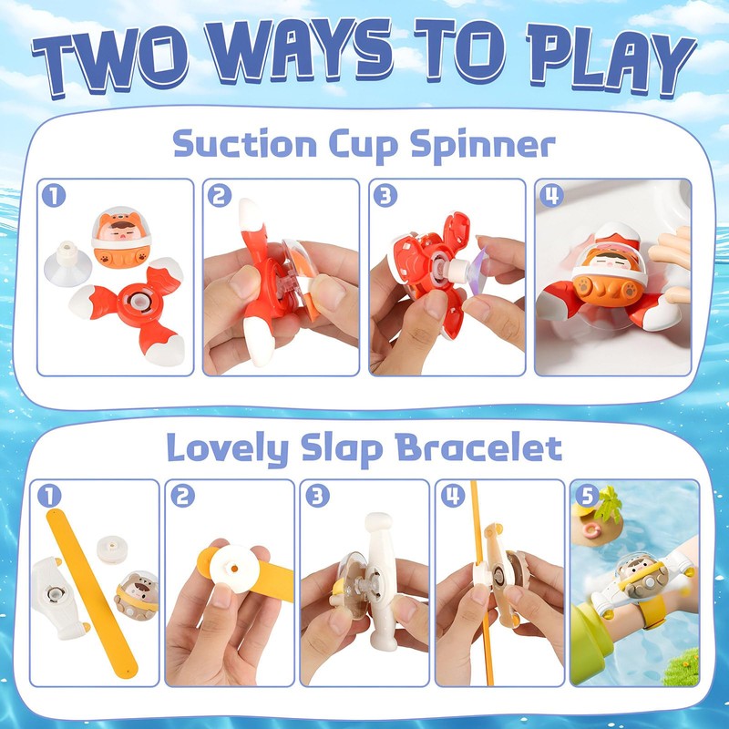 - Strong suction and endless fun: with their suction cups, these toys stick securely to various smooth surfaces such as glass, tiles, bathtubs and baby tables. When the water flows to the leaves, it continues to rotate. Whether as a bath toy or travel companion, the rotating animal family captivates your child's eyes and ensures that they enjoy every moment.