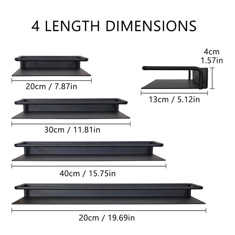 JOOM Metal Wall Floating Shelf - Metal Wall Shelf, Black Floating Shelf, Small Bathroom Shelf, (Black, 8Inch)