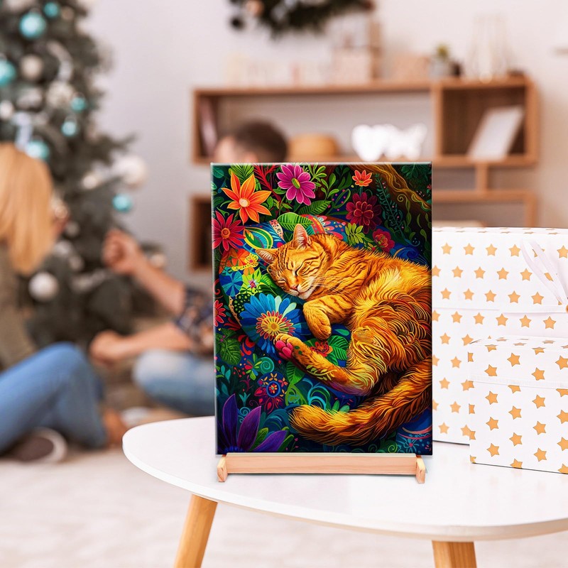 JOOZ Cat Paint by Numbers Kit for Adults with Frame Cat and Flowers Paint by Number with Easel Paint by Number for Adults DIY Oil Painting Kits DIY for Gift Home Wall 12x16 Inch