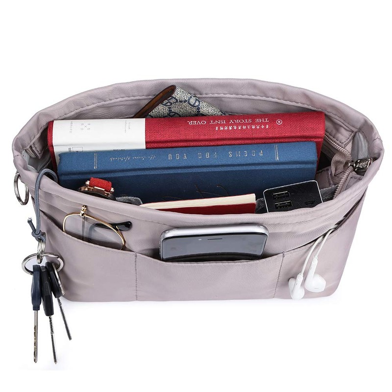Joqixon Nylon Bag Organiser Bag in Bag, Handbag Organiser, Inner Pockets for Handbags, Bag Organiser, gray, handbag organizer