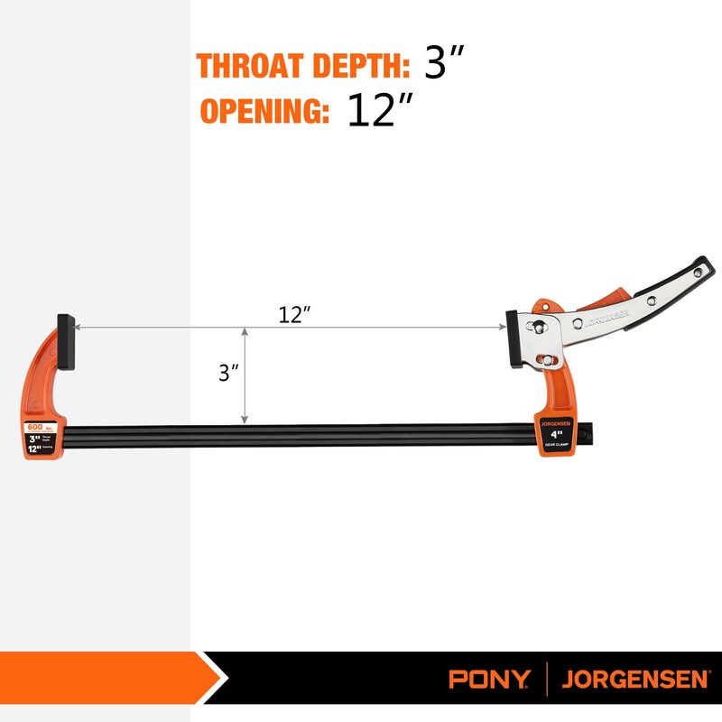 Jorgensen 12-inch Bar Clamp Set, Bar Clamp for Woodworking, Quick Release Gear Clamp with 600 lbs Load Limit - 2 Pack