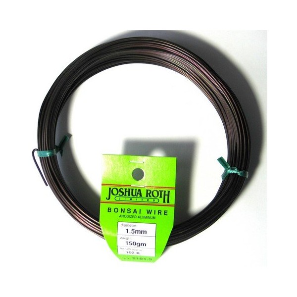 Our aluminum wire has an anodized coating, and is designed for shaping and holding branches and small trunks inconspicuously. Re-usable and easy to apply, it is softer than copper wire and less likely to damage the tree. 1.5 mm dia wire in a 150 gm size coil. Color may vary from picture.