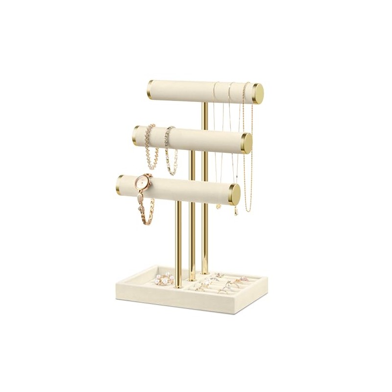 Josmimic Bracelet Holder Jewelry Organizer Display - 3 Tier T Bar Velvet Stand, Beige Jewelry Storage for Bracelet, Necklaces, Watches