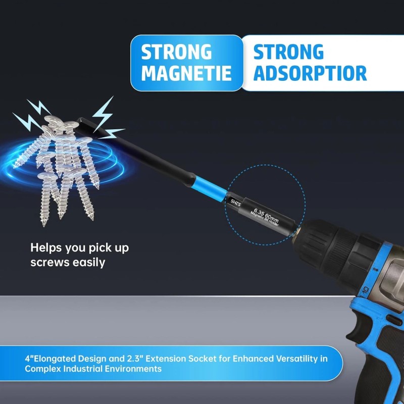 - METRIC HEX BIT SET WITH DEEP EXTENSION: Metric hex bit set pairs 4" shaft + 2.3" extension (6.3" total) for tight plumbing and electronics. Magnetic tips secure screws effortlessly. Combines with allen bit set for universal 1/4" impact compatibility