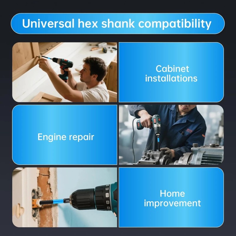 - LONG HEX BIT SET - EXCEPTIONAL IMPACT TORQUE RESISTANCE: Long hex bit set absorbs heavy loads via heat-treated S2 alloy and manganese coating. Engineered for allen wrenches sets for impact driver with exceptional durability. Non-slip hex grip prevents breakage in construction and auto frames.