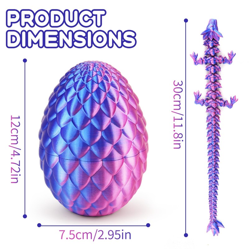 - 3D printed dragon egg, with a 12-inch crystal dragon inside. 3D printed gift, business office desk toy, character decoration, essential item for Easter basket.