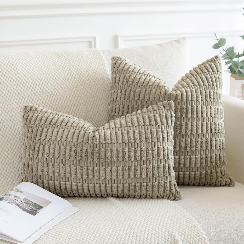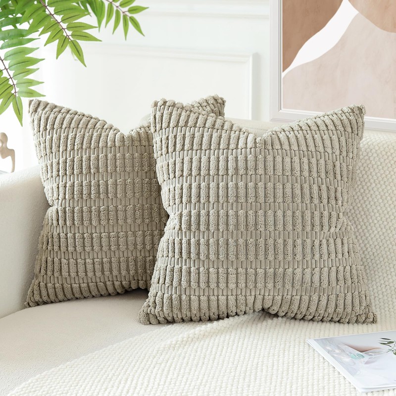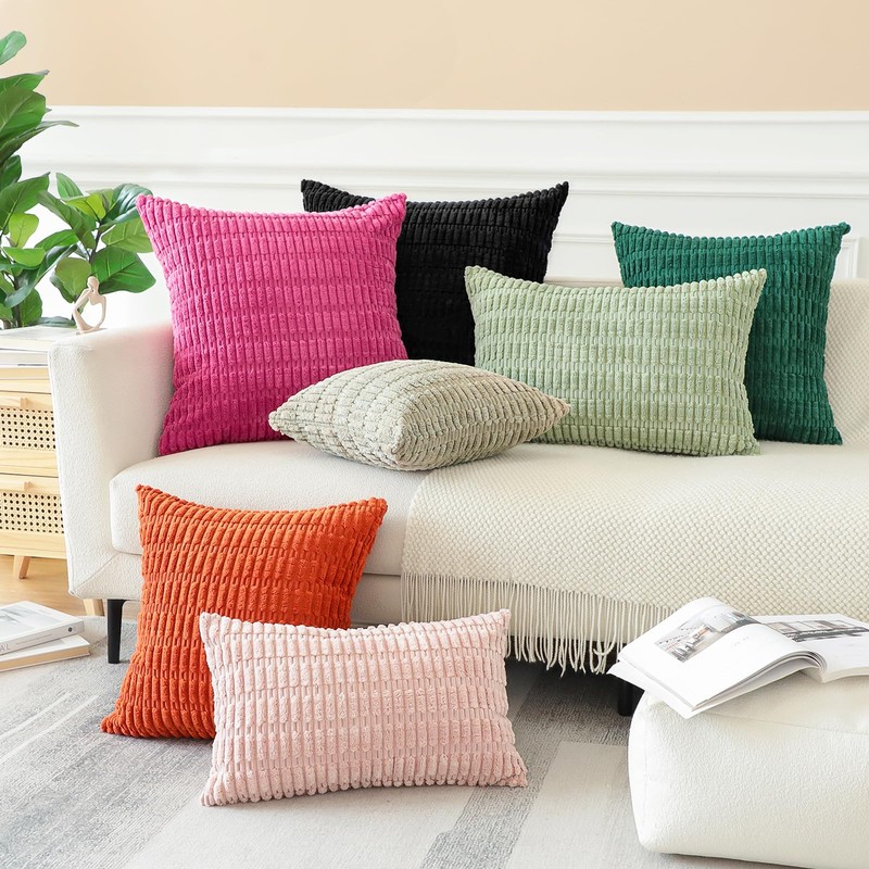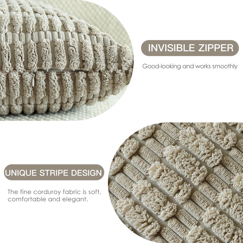- MATERAIL: Cushion Covers are made of soft corduroy, the unique striped pattern adds cuteness to these pillowcases. Comes with a hidden zipper. The fabric is reinforced with high-quality stitching to prevent fraying and increase the durability of the pillowcase.
