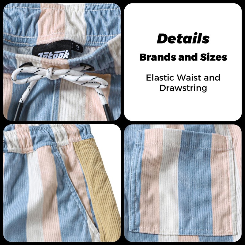 JOTOOK Men's Casual Drawstring Corduroy Shorts Elastic Waist Summer Shorts with Pocket Small Blue Pink Stripe